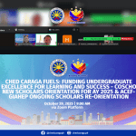 The Commission on Higher Education (CHED) Caraga Regional Office, successfully conducted the orientation for new and on-going scholars during the activity dubbed as, “CHED Caraga FUELS: Funding Undergraduate Excellence for Learning and Success,” held on October 29, 2025 via zoom. The activity was attended by a total of 36 new scholars under the Scholarship Program continue reading : CHED Caraga orients CoScho, ACEF-GIAHEP scholars